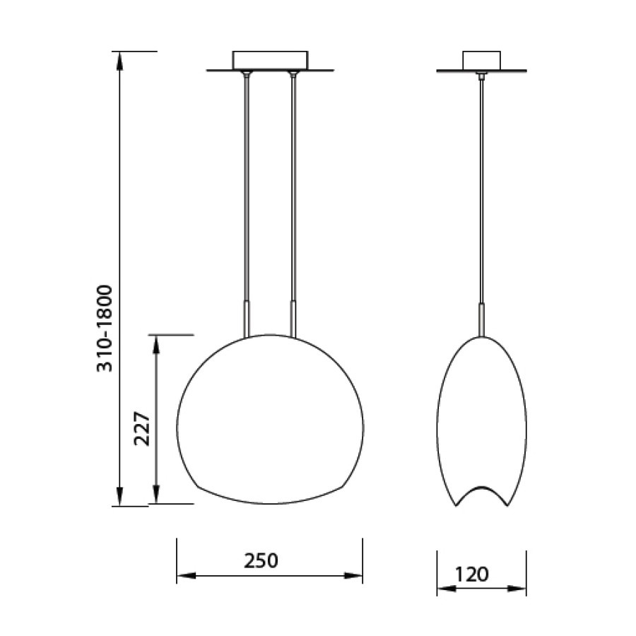 - Высота люстры без цепи