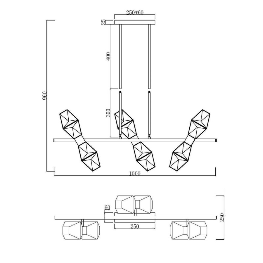 Конструкция светильника предусматривает применение 6 ламп с цоколем G9, общая мощность 168 Вт, что позволяет осветить 12 м2.