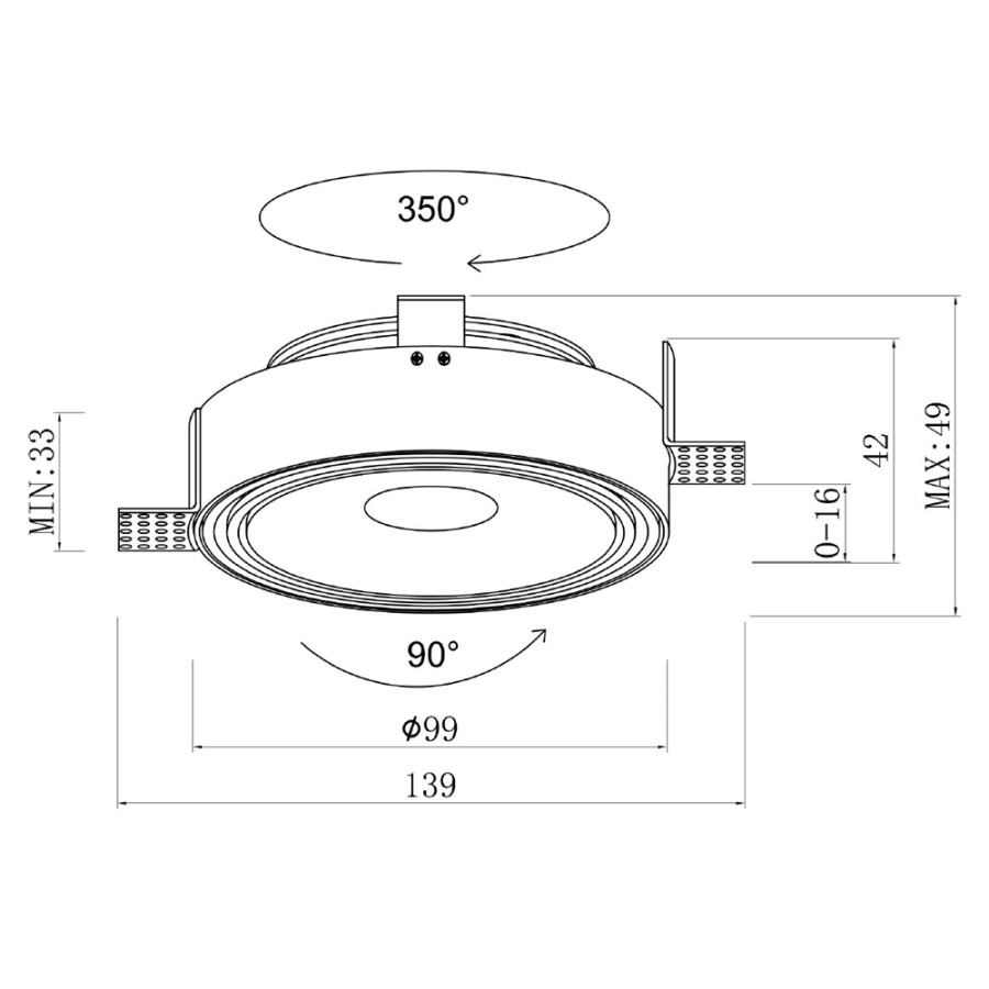 Цветовая температура регулируемая, от 3000K (теплый белый) до 6000K (холодный белый) - выбирается при монтаже светильника с помощью встроенного в драйвер переключателя. Угол рассеивания 36°
