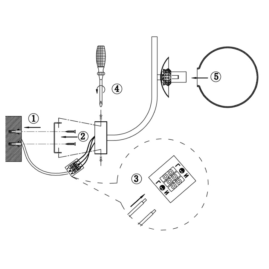Конструкция светильника предусматривает применение 1 лампы с цоколем E14, общая мощность 40 Вт, что позволяет осветить 3 м2.