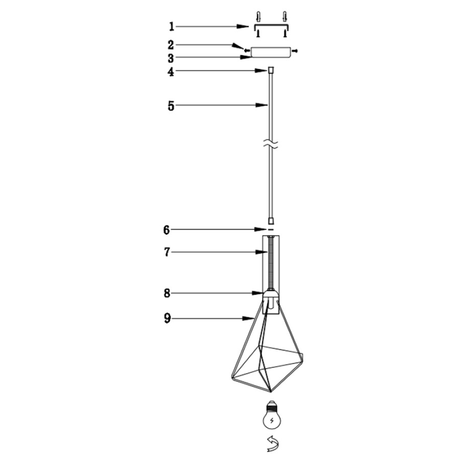 Конструкция светильника предусматривает применение 1 лампы с цоколем E27, общая мощность 60 Вт, что позволяет осветить 5 м2.