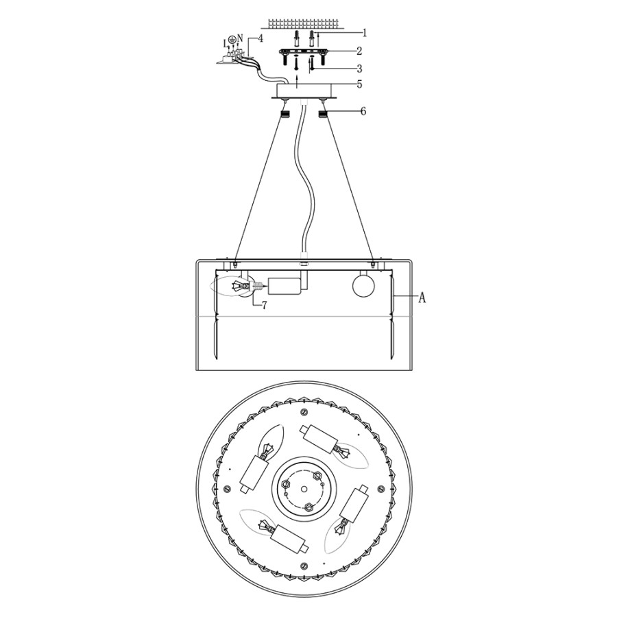 Конструкция светильника предусматривает применение 4 ламп с цоколем E14, общая мощность 240 Вт, что позволяет осветить 18 м2.