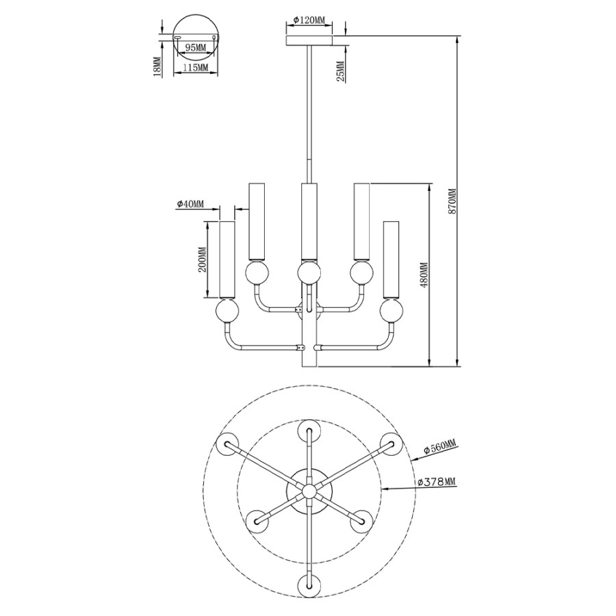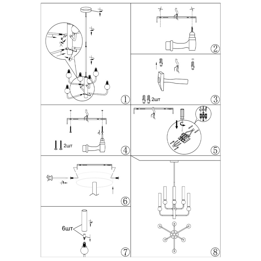Конструкция светильника предусматривает применение 6 ламп с цоколем G9, общая мощность 30 Вт, что позволяет осветить 13 м2.