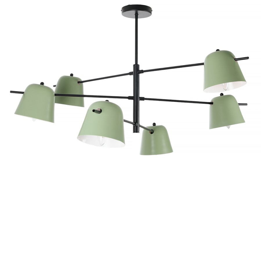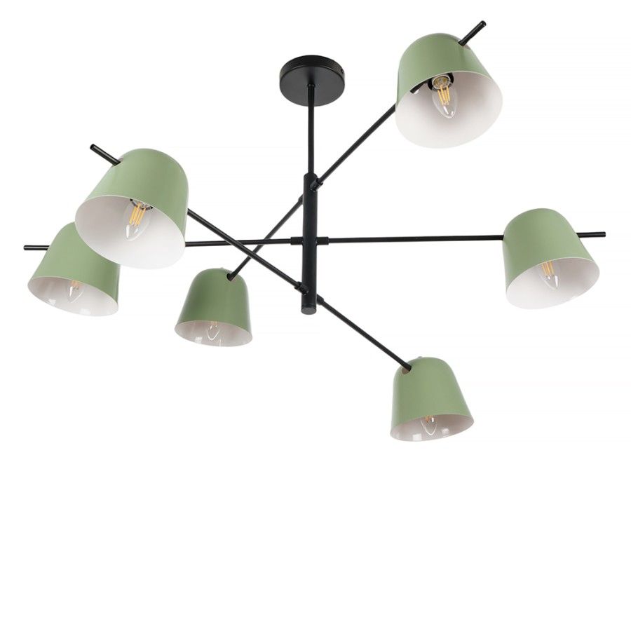 Конструкция светильника предусматривает применение 6 ламп с цоколем E14, общая мощность 240 Вт, что позволяет осветить 18 м2.