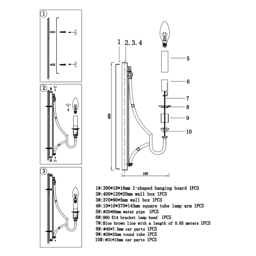 Конструкция светильника предусматривает применение 1 лампы с цоколем E14, общая мощность 40 Вт, что позволяет осветить 3 м2.
