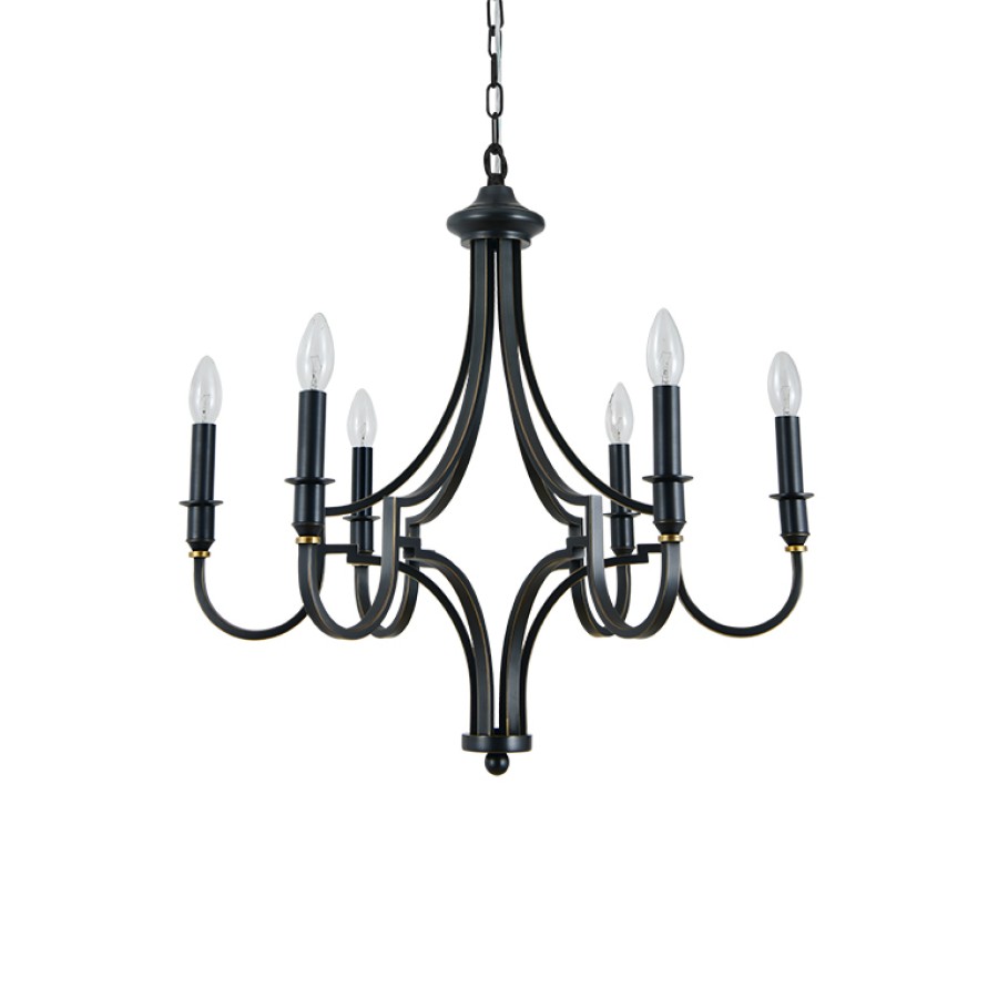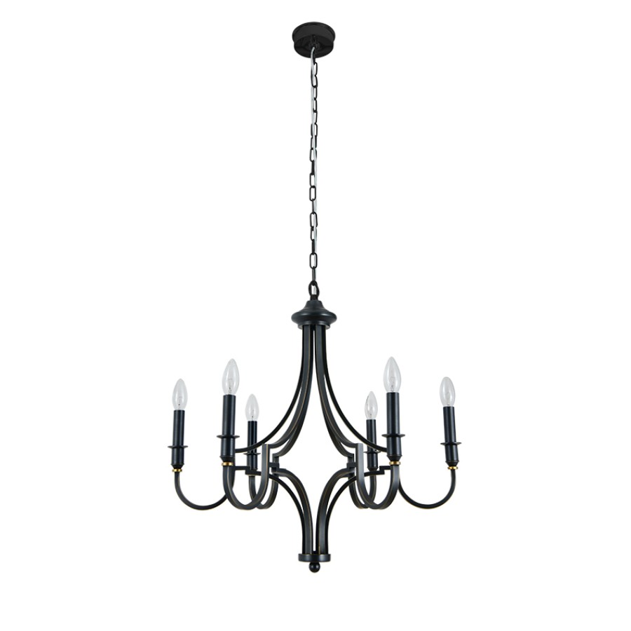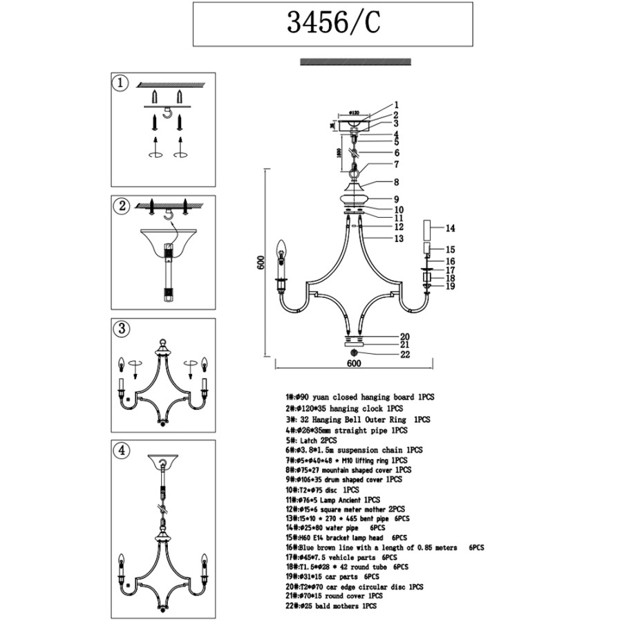 Конструкция светильника предусматривает применение 6 ламп с цоколем E14, общая мощность 240 Вт, что позволяет осветить 18 м2.