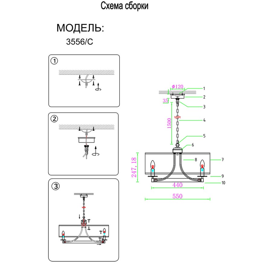 - Максимальная высота люстры