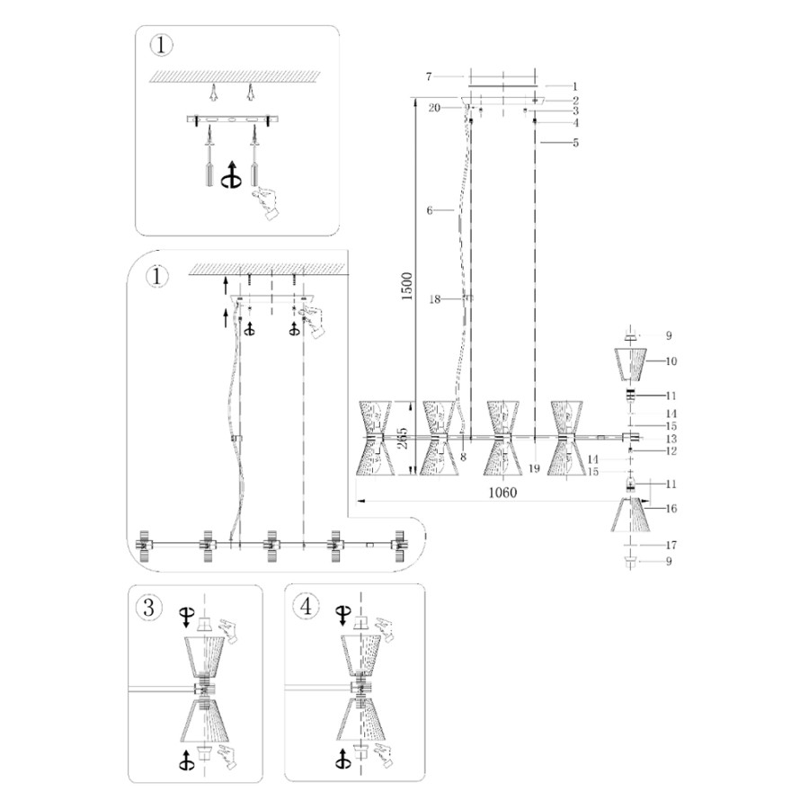 Конструкция светильника предусматривает применение 10 ламп с цоколем E14, общая мощность 400 Вт, что позволяет осветить 29 м2.