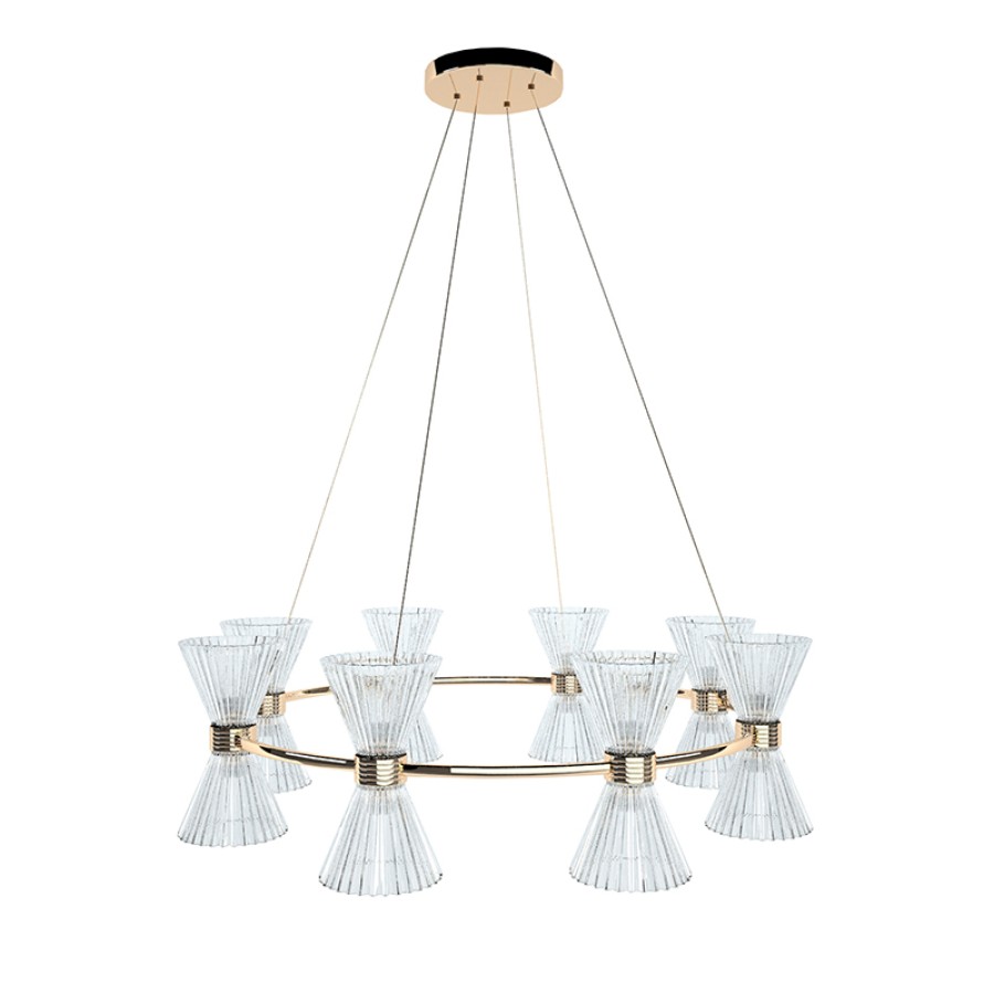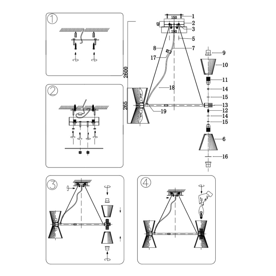 Конструкция светильника предусматривает применение 16 ламп с цоколем E14, общая мощность 640 Вт, что позволяет осветить 35 м2.
