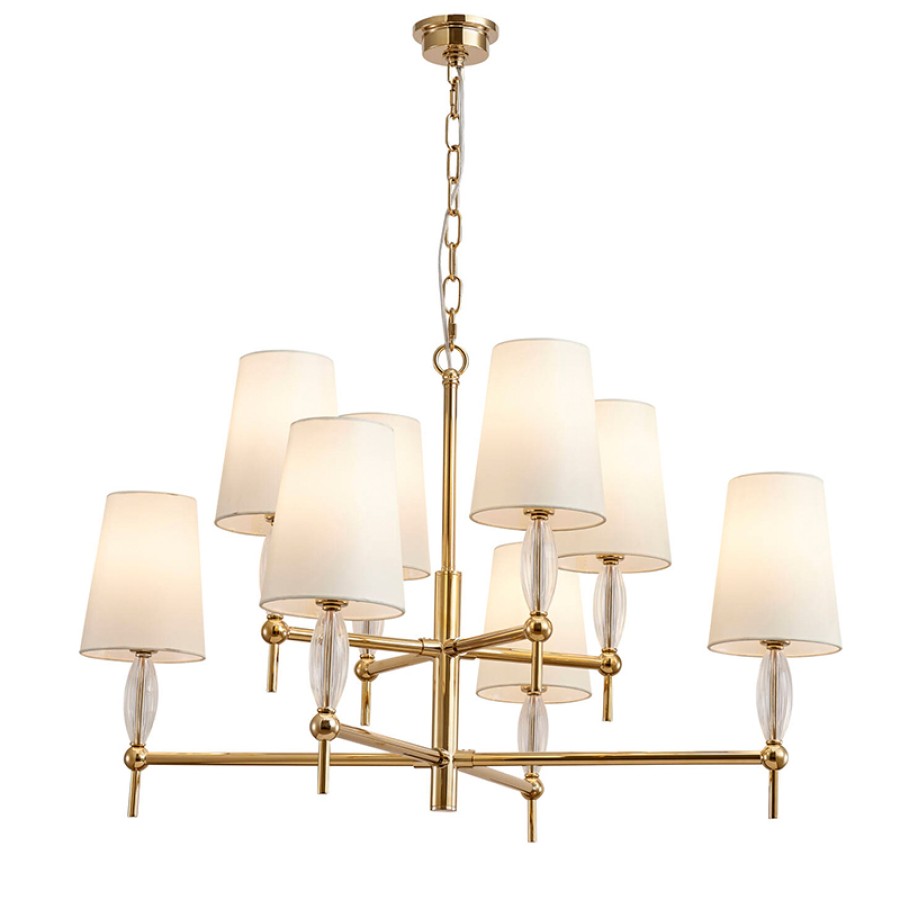 Конструкция светильника предусматривает применение 8 ламп с цоколем E14, общая мощность 320 Вт, что позволяет осветить 23 м2.