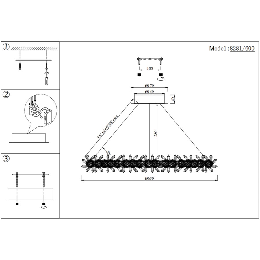 - Высота люстры без цепи
