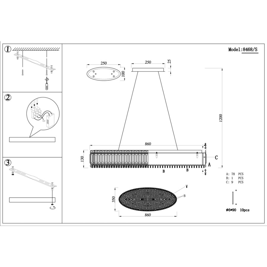 Конструкция светильника предусматривает применение 8 ламп с цоколем G9, общая мощность 480 Вт, что позволяет осветить 35 м2.