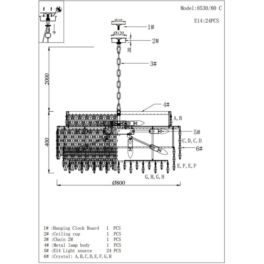 - Высота люстры без цепи