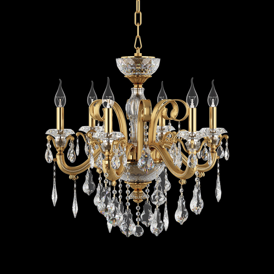 Конструкция светильника предусматривает применение 6 ламп с цоколем E14, общая мощность 360 Вт, что позволяет осветить 26 м2.
