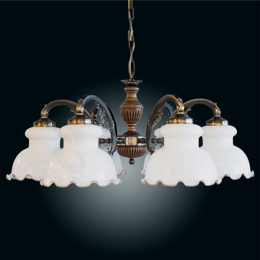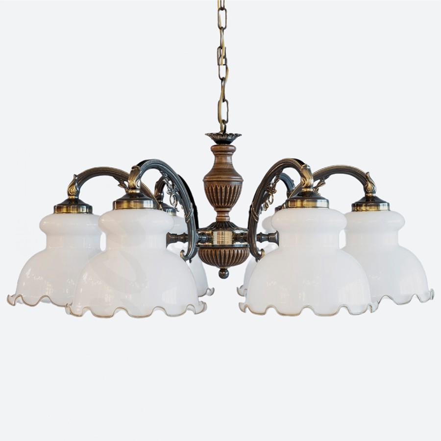 Конструкция светильника предусматривает применение 6 ламп с цоколем E27, общая мощность 360 Вт, что позволяет осветить 26 м2.