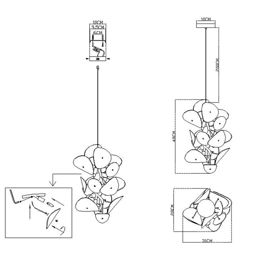 - Высота люстры без цепи
