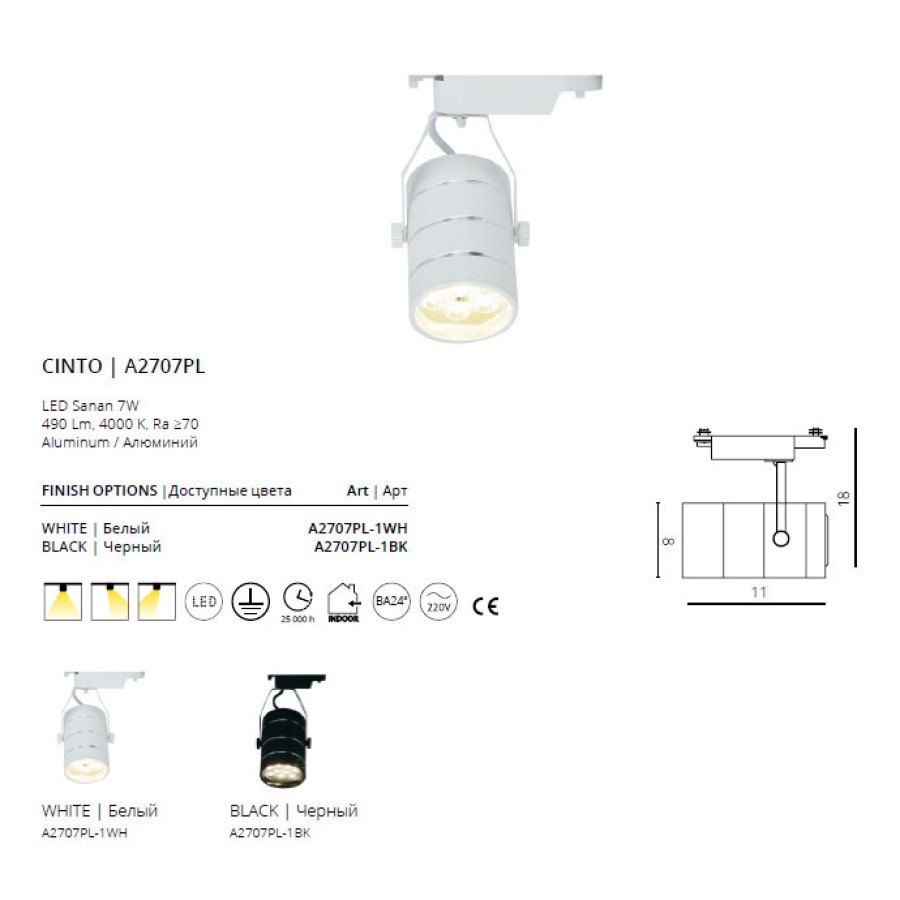 Трековый светильник Arte Cinto A2707PL-1WH