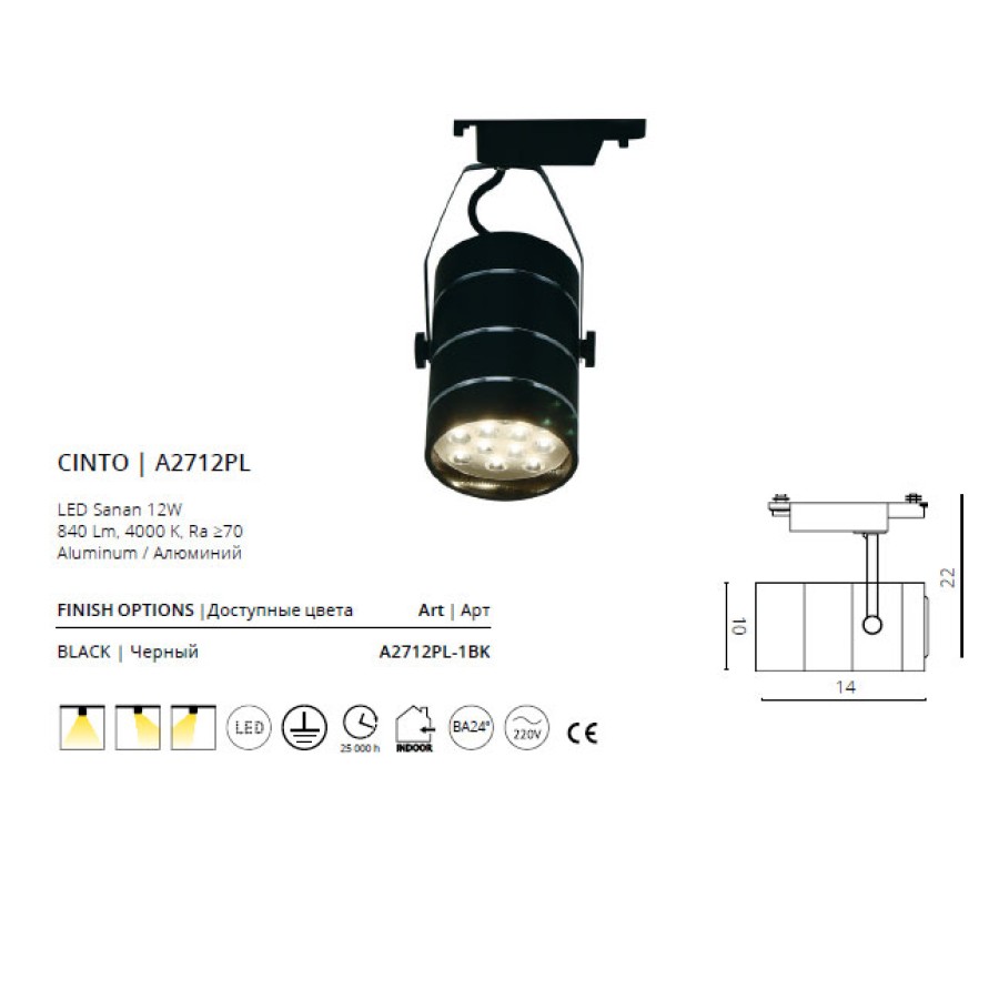 Трековый светильник Arte Cinto A2712PL-1BK
