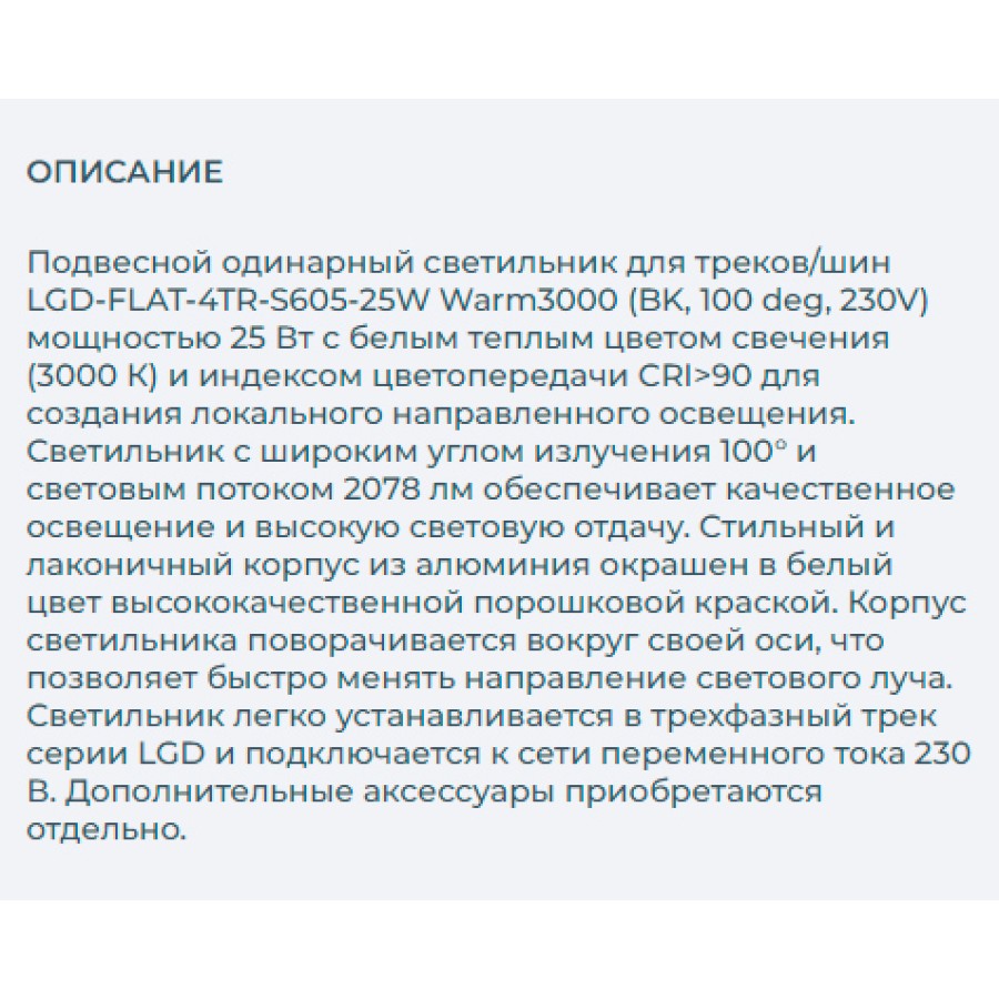 Трековый светильник Arlight LGD-FLAT-4TR-S605-25W Warm3000 033698(1)