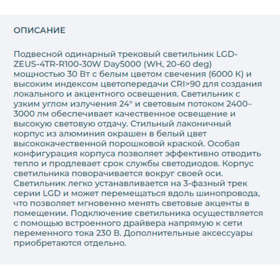 Трековый светильник Arlight LGD-ZEUS-4TR-R100-30W Day5000 026619